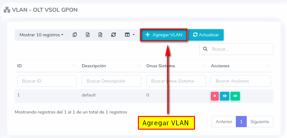 Crear VLAN en la OLT Vsol GPON